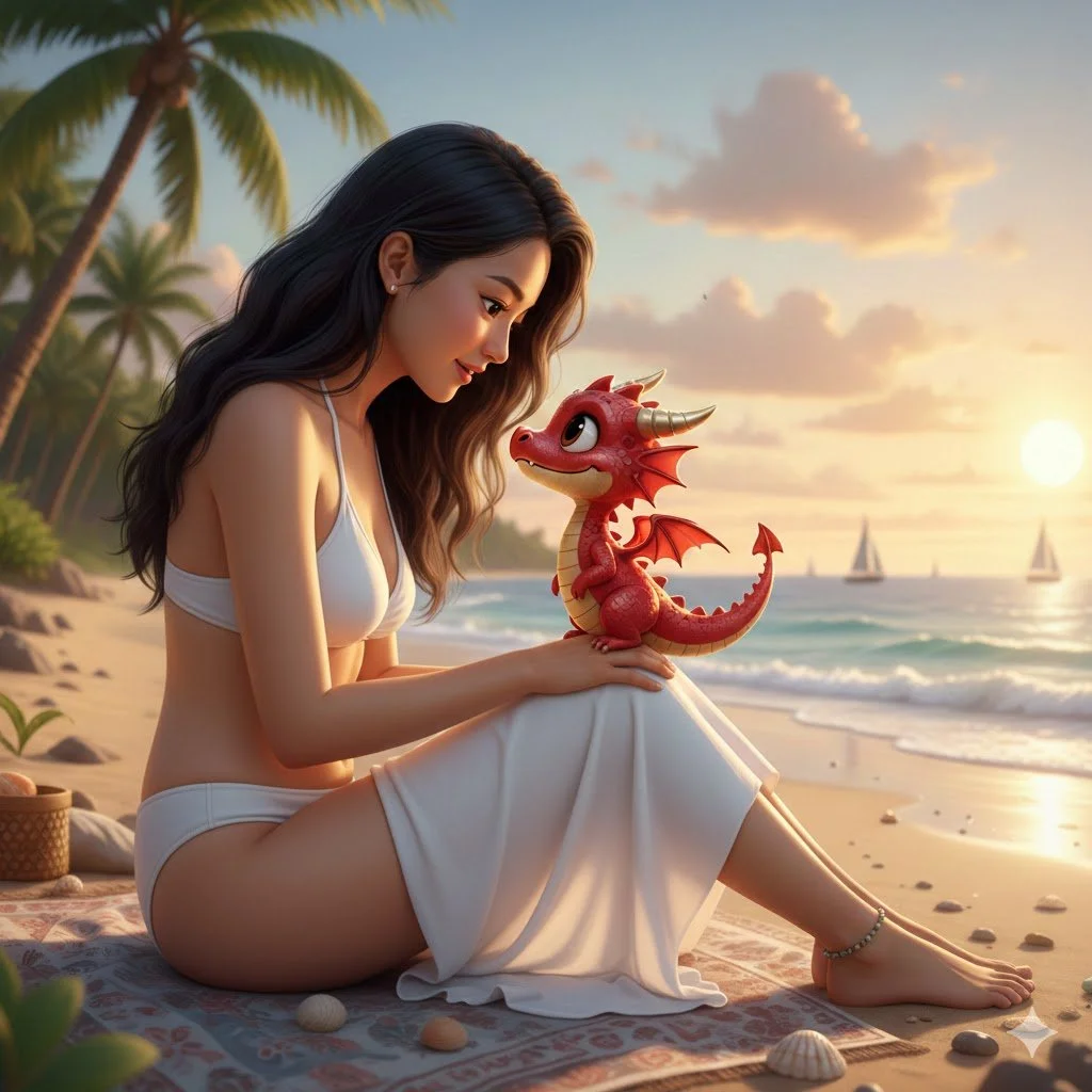 Its gaze transfixed on my eyes as we lithely look at each other. As the tiny dragon slowly descends to my eye level, I do one more mental check-in to be sure that I'm not hallucinating. “I mean, I did take an edible the day before, but why would it be kicking in right now, like some sort or delayed backlash being bounced back from my brain.” The dragon continues to descend, eventually landing on my chest. The super crop white tee sitting over my bikini top seems like a field of snow being beamed down on by the sun barely shielding any skin. The dragon walks in a circle, kneading like a cat before lying down.